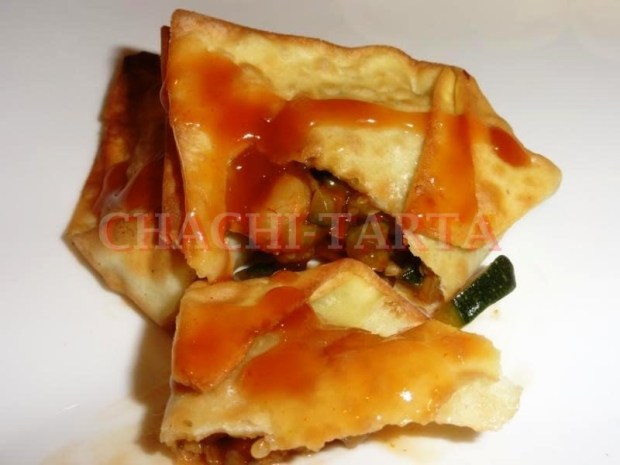 Fríe en abundante aceite muy caliente (si tienes freidora mejor), durante más o menos 1 minuto; como la masa es muy finita y el relleno ya está cocinado no hace falta más tiempo, notarás que enseguida cogen color y quedan muy tostaditos. Retira y escurre en papel absorbente para retirar el exceso de aceite.