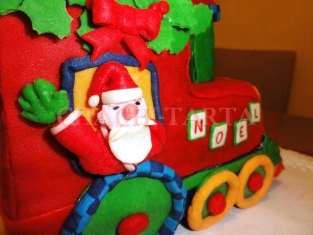Santa este año ha cambiado el trineo por un «Chu-chú», así es como Gabrielito que con a penas 2 añitos es fan de todo lo que tiene ruedas, para ser sincera al principio pensó que la tarta era un juguete y quiso jugar con ella!!! jijiji XD