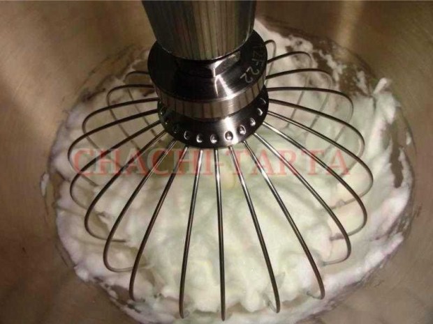 En dos boles separa las yemas de las claras teniendo cuidado de no romperlas, éstas las guardaremos para otra receta, por ahora solo utilizaremos las claras que deberás montar a punto de nieve. Si lo prefieres también puedes comprar claras pasteurizadas (las venden en los supermercados), teóricamente suben igual que las claras frescas.