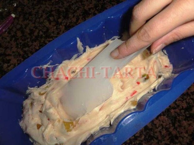 Vuelca la masa en un molde ya sea de silicona o de aluminio previamente engrasado, yo he usado uno de silicona alargado como de plumcake, pero la forma al final no es importante eso ya queda a tu elección. Con una espátula alisa un poco la superficie para que quede más o menos igualado y deja reposar durante 1 hora dentro del horno apagado y tapado con un trapo o un trozo de papel film transparente.