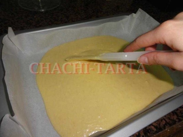 En el molde de horneado vuelca la mezcla y hornea a 180 grados durante 20 a 25 minutos (horno precalentado), he de decir que yo he tenido que hornear 2 bizcochos, ambos en un molde de aluminio rectangular de 24x27cm. Para que sea fácil de desmoldar puedes colocar papel vegetal en el molde, así evitarás que se adhiera.