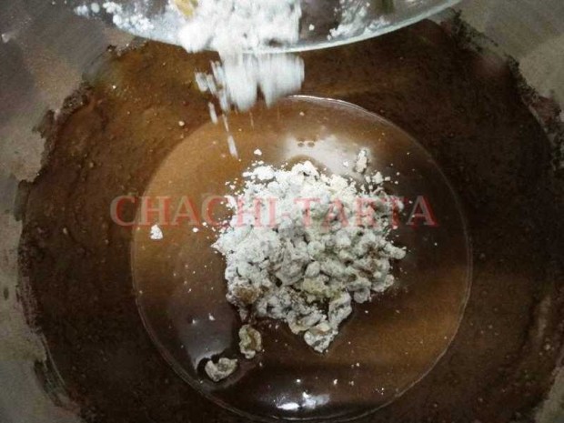 En otro bol tamiza la harina, levadura y cacao en polvo, e incorpora a la mezcla anterior poco a poco removiendo hasta que no queden grumos, ahora añade las claras montadas poco a poco y removiendo manualmente con ayuda de una espátula para evitar que se bajen las claras.