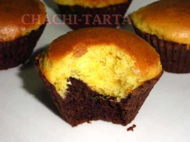 La de hoy más que una receta es una idea que te quiero compartir para que sorprendas a tus amigos o familia, éstas originales magdalenas combinadas sabor chocolate y naranja (todo sin gluten), que aparentemente parecen unas magdalenas comunes y corrientes, pero no!… mi marido me vio comerlas y enseguida me dijo: «pero no te comas el papel!!!» jijiji