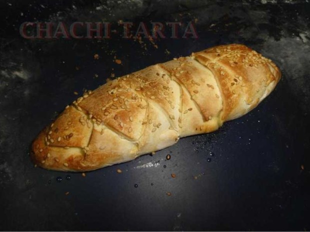 Prepara cada una de las baguetinas y colócalas en la bandeja del horno (puedes sino guardarlas en el congelador para tomarlas en otro momento), pinta con un poco de huevo batido por encima y espolvorea semillas de sésamo, hornea a 200 grados durante 20 a 25 minutos (horno precalentado), notarás que está hecho cuando huela de maravilla!!!