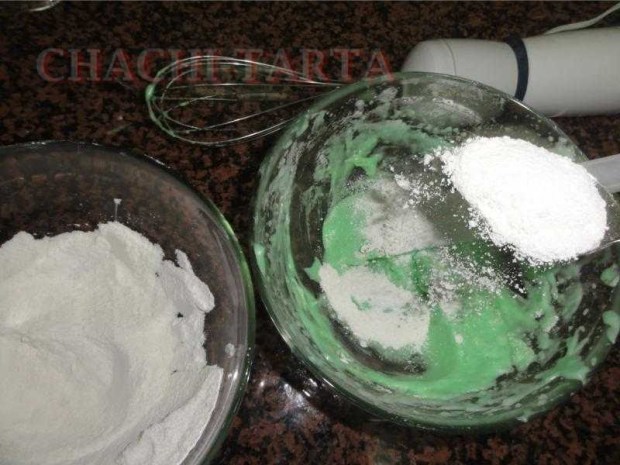 Añade el aroma y colorante deseado, en este caso yo he puesto nada más un poquito de ralladura de limón muy finita y un poquitín de colorante verde en gel de la marca Sugarflair.