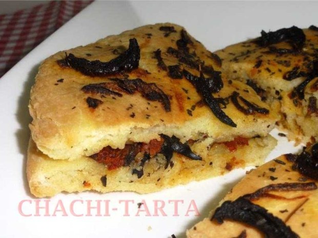 Receta de Schiacciata de cebolla, tomate y aceitunas negras (sin gluten)