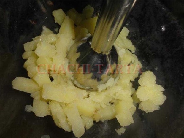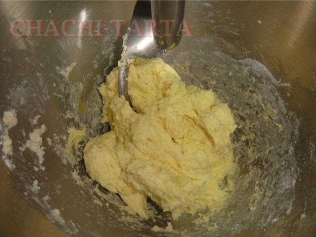 Amasa ligeramente y por último agrega el puré de patata, continúa amasando hasta unificar todos los ingredientes, puedes utilizar robot amasador o hacerlo a mano. Puede que en principio te parezca que la masa está muy inestable y viscosa, pero ese es el punto que tiene que coger.