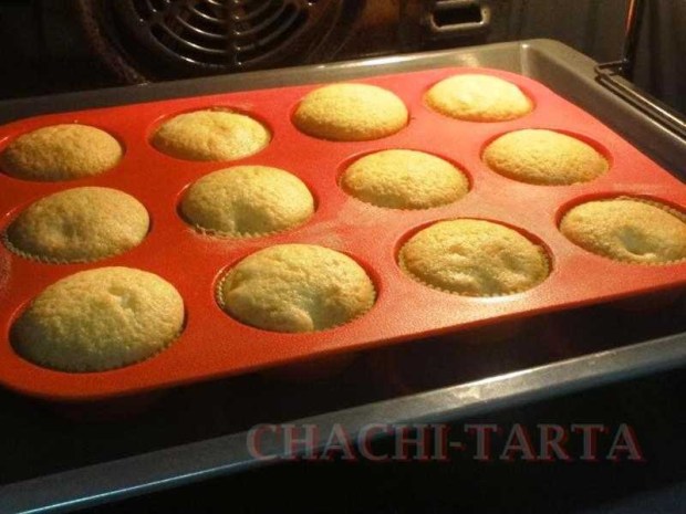 Hornea a 180 grados durante unos 30 minutos (horno precalentado), en principio la mezcla puede parecer bastante líquida pero con el horneado suben bastante y quedan muy esponjositos… mira que color tienen! 😀