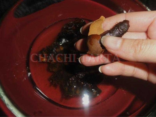 Pela los tamarindos y colócalos en el bol con agua, deja que reposen durante 1 hora para que suelten la pulpa, y cuando ya estén esponjosos retira las pepitas, la mejor forma de hacerlo es con la mano directamente.