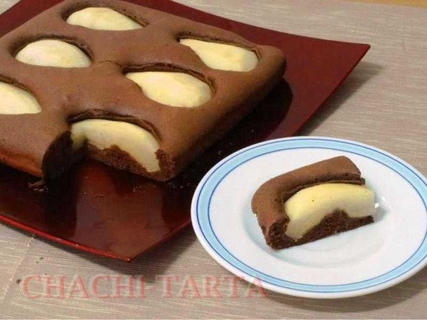 Hoy amanecí con ganas de algo bien chocolatoso y recordé de esta receta que hace algún tiempo vi por la tele, me pareció muy buena y fácil de preparar, es ideal para el desayuno o merienda; la combinación de chocolate con peras en este bizcocho es sencillamente exquisita y además sin gluten 😉