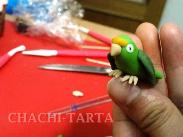 Como siempre he comenzado por elaborar los muñequines, esta vez nos acompañan unos simpatiquísimos amigos emplumados que hicieron muy amena nuestra estadía en un hotel de playa, de pronto me han entrado ganas de tener uno en casa jijiji