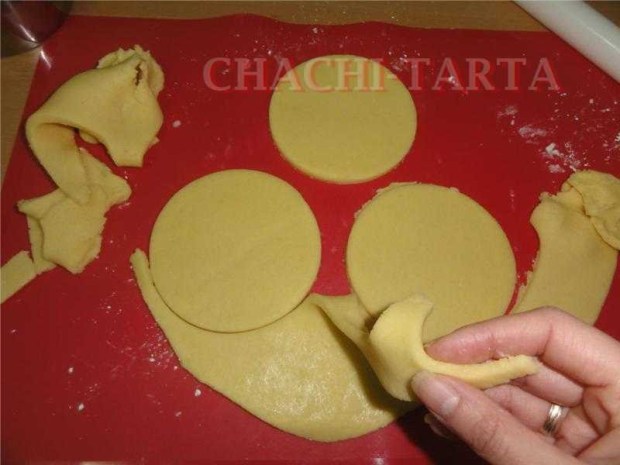 Una vez fría extiende la masa sobre una superficie enharinada con ayuda de un rodillo hasta que tenga grosor de mas o menos 1/2 centímetro. Corta círculos con un cortador y colócalos dentro de los moldes de tartaletas, recorta los bordes sobrantes y deja que sigan reposando en la nevera unos minutos más.
