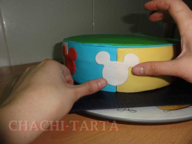 He tenido que anticiparme a hacer las figurillas unos días antes para dar tiempo a que endurecieran, aunque el fondant Dr Oetker tiende a secar bastante rápido, si te interesa he preparado un tutorial paso a paso de como modelar a Mickey en pasta fondant.