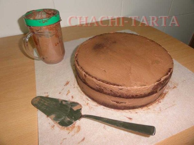 El bizcocho es de chocolate, y la decoración está hecha con fondant de la marca Dr Oetker (sin gluten), está relleno con nata montada sabor cacao que combina de maravilla!, no hay nada mejor que más chocolate para acompañar el chocolate jejeje 😉