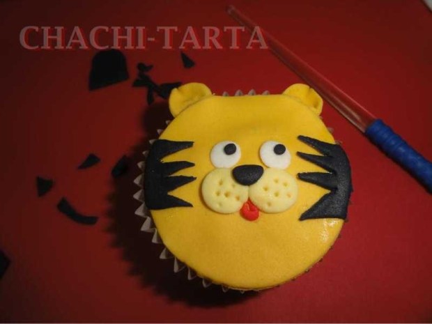 Por último recorta trocitos de fondant negro y pega las rallas sobre la cabeza y los laterales. Mi recomendación es que cuando manipules el fondant pintes por último el de color negro ya que las manos quedan terriblemente perdidas (no me gusta pintar negro )