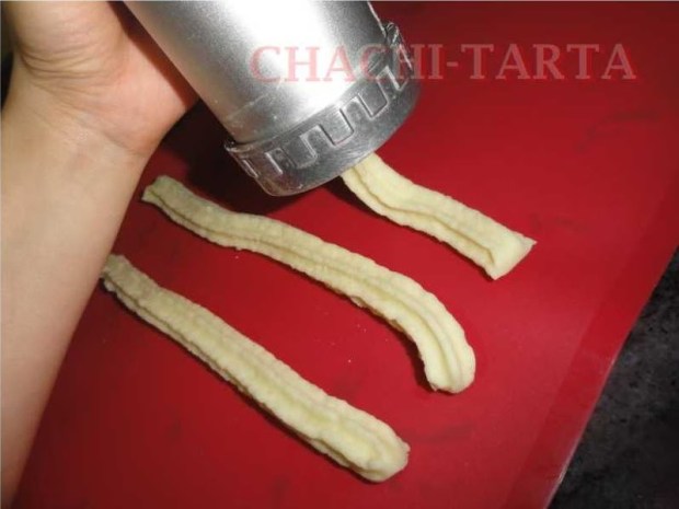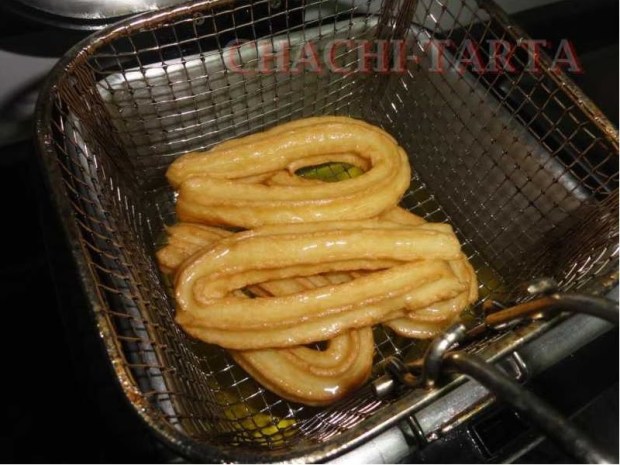Fríe durante unos 5 minutos a temperatura media, si tienes freidora quedan mucho mejor, pero ten siempre en cuenta que para que no pierdan los canalillos la masa debe estar completamente fría.