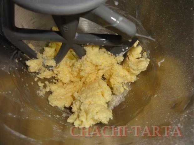 Mezcla ya sea a mano o con amasadora hasta que todo quede integrado y se forme como una pasta sólida y consistente. Si ves que la mezcla ha quedado demasiado dura y con aspecto «arenoso» puedes arreglarla añadiendo un poquito (pero muy poco) de agua o leche, el caso es añadir un poco más de humedad.