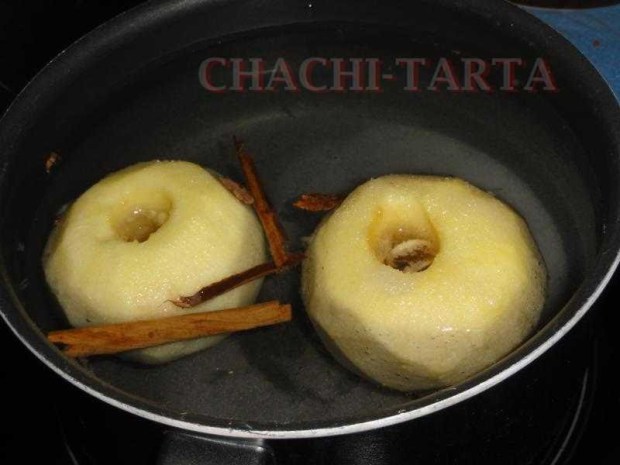 Posteriormente pela y descorazona las manzanas, ponlas a cocer en abundante agua con azúcar y canela durante unos 20 minutos aproximadamente o hasta que se noten cocidas, de eso que pinchas con el tenedor sin esfuerzo.