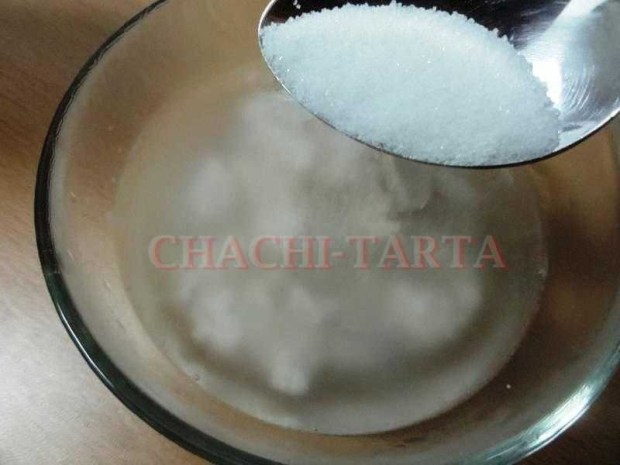 Empieza por hidratar la levadura fresca de panadería (marca LEVITAL – sin gluten) en agua templada con azúcar y deja en reposo durante unos 15 minutos hasta que fermente.