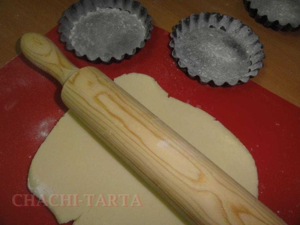 Engrasa los moldes de tartaleta, extiende la masa en una superficie enharinada y coloca la masa sobre los moldes, recorta los bordes u pincha con un tenedor.