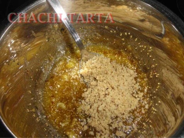 Transcurrido el tiempo de macerado cocina a fuego medio removiendo constantemente para que todo se integre y se forme una «papilla» aproximadamente durante unos 20 minutos.