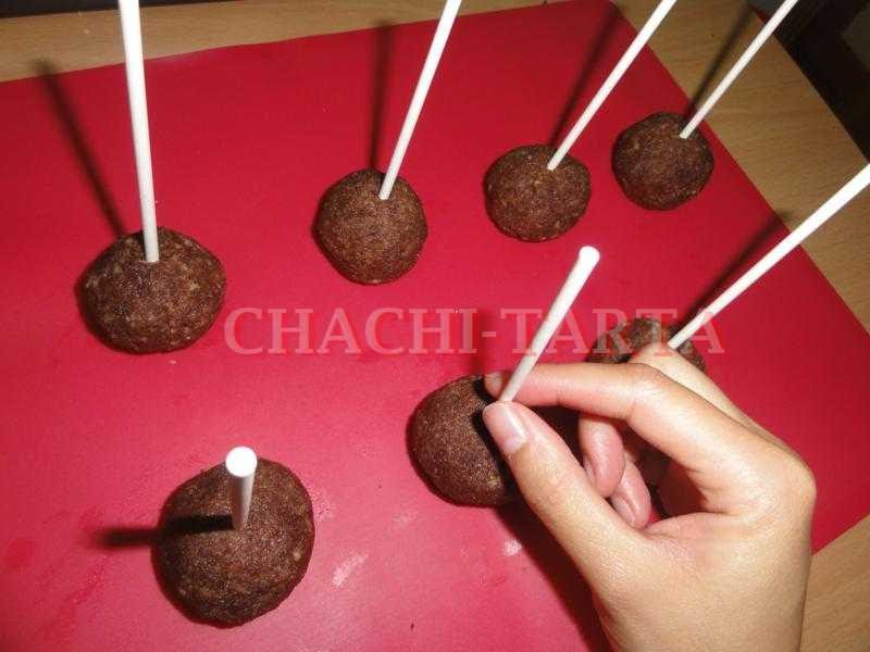 Remueve con una espátula hasta que se forme una mezcla consistente y con las manos forma bolitas intentando que queden más o menos del mismo tamaño, introduce el palito de papel sin presionar demasiado y conserva en la nevera un par de horas para que endurezca.
