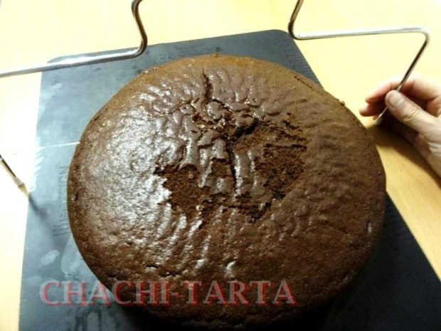 Nuevamente el bizcocho ha sido de chocolate (por supuesto sin gluten) relleno de nata sabor cacao, parece que es el preferido de casi todo mundo, la verdad es que está muy bien.