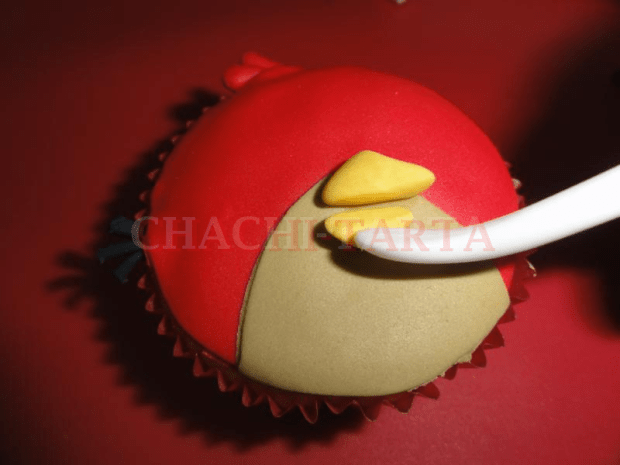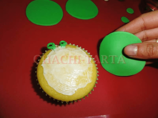 Para adherir la cobertura de fondant he utilizado un poquito (pero muy poco) de crema de vainilla Betty Crocker (sin gluten), habiendo adherido el resto de piezas con un pincel humedecido con agua.