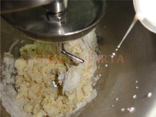 Añade la mantequilla derretida, el huevo ligeramente batido, la sal y el azúcar, poco a poco agrega le leche templada a la vez que mezclas, amasa hasta que se forme una bola ya sea manualmente o con ayuda de robot amasador.