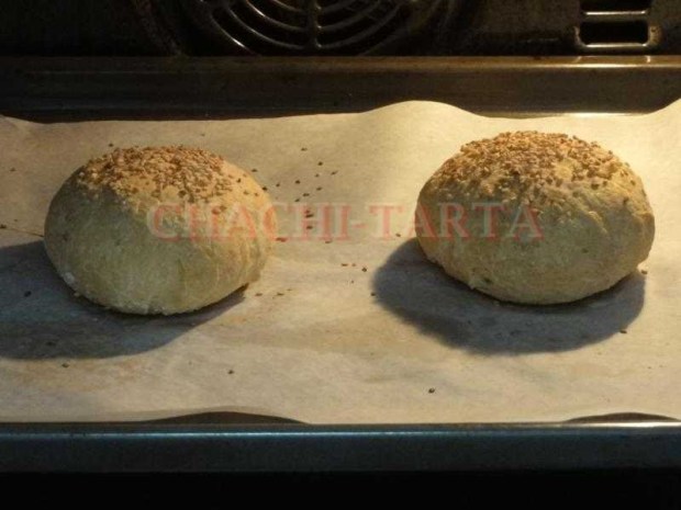 Con las manos ligeramente húmedas moldea los panecillos dando la forma de la hamburguesa, colócalos en la bandeja del horno y cubrelos con papel film para que nuevamente leven en el horno cerrado y apagado.
