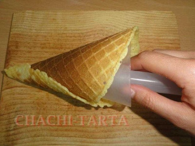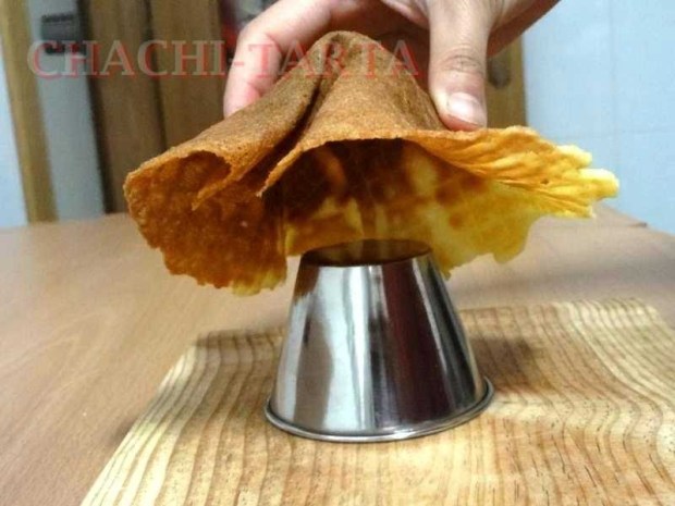 Inmediatamente deberás dar la forma ya sea de cono o tulipa, para los conos las maquinas barquilleras suelen traer un utensilio con el que se les da la forma muy fácilmente y para el caso de las tulipas vasta con volcar sobre un cuenco echado hacia abajo, moldear y esperar a que endurezca para retirar.
