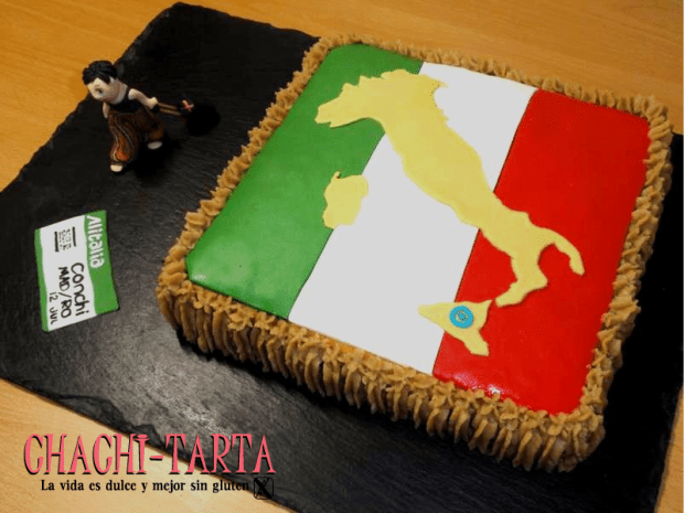 Tarta de cumpleaños: «Nos vamos a Italia» (sin gluten)