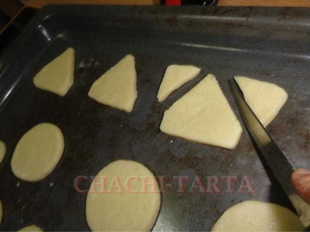 Al final he hecho 5 círculos grandes, 5 círculos pequeños y 5 cuadrados; coloca las galletas en la bandeja del horno dejando margen de separación entre ellas y hornea a 200 grados durante 15 minutos (horno precalentado). Una vez horneadas retira y deja que se enfríen completamente sobre una rejilla antes de decorar.