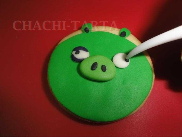 Utilizando los mismos cortadores, he recortado las piezas para pegar directamente sobre la galleta a modo de recubrir, de esta forma tendrán el mismo tamaño; posteriormente he añadido el resto de los detalles.