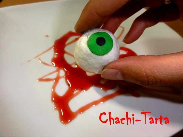 Como sacados de alguna escena sangrienta de las pelis de terror, así me han quedado estos ojos sangrientos con los que me convertí en una de las ganadoras del concurso de recetas de Halloween de Cookpad.