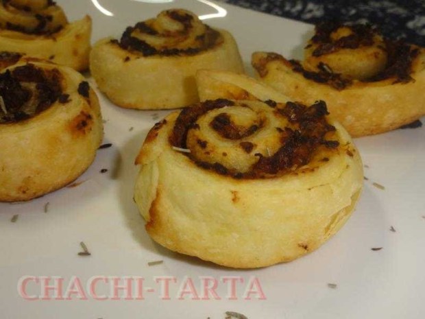 Caracolas de hojaldre con tomate y anchoas (sin gluten)