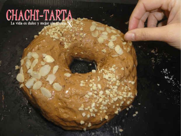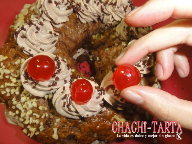 Este año he querido salirme un poco de lo convencional preparando el roscón con un toque achocolatado, conservando algunos elementos que nunca deben faltar y que para mi caso son como siempre libres de gluten: nata, almendras, frutos confitados y como no… la sorpresa!, en fin, te dejo por aquí mi receta que es bastante sencillita.