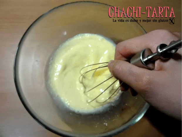 Mezcla el huevo junto con el azúcar, la leche (KAIKU – sin lactosa) y la MAIZENA, utiliza unas varillas de cocina para que se disuelvan bien los grumos, bate vigorosamente hasta que quede una mezcla homogénea.