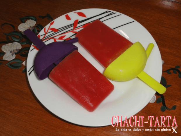 El verano se hace notar cada vez más y a menudo apetece refrescarnos con postres fresquitos, a veces con toques distintos, como el que te quiero compartir hoy. Esta semana hemos pasado en Asturias una de las peores olas de calor de todos los tiempos, y para combatirlo nos tomamos uno de estos originales polos de sandía sin gluten, sin lactosa pero con sorpresa!!