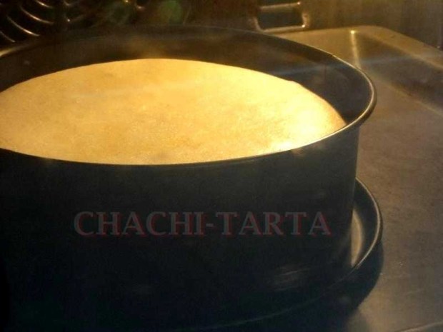 Para el bizcocho he de decirte que lo hice un tanto «a ojo», con las prisas casi no me dio tiempo ni a medir, sin embargo la experiencia de haber horneado tantos bizcochos en mi vida me ayuda en estos casos. Las cantidades dependen también como decía antes del tamaño del molde que quieras utilizar.