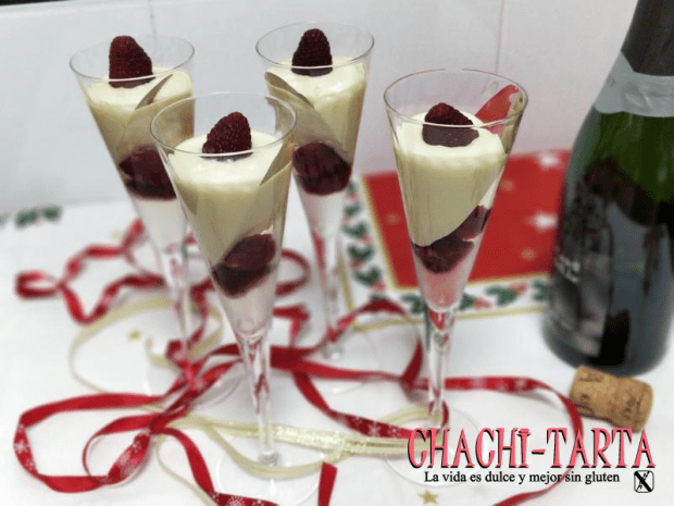 Cuanto tiempo ha pasado y admito que he tenido abandonado el blog, con tanto ajetreo de trabajo no me queda mucho tiempo pero bueno, se acaba el año y no podía dejar pasarlo sin publicar la última entrada del 2017 con un postre sencillito pero a la vez muy elegante es perfecto para una noche de gala, estas deliciosas copas de gelatina de cava con mousse de chocolate blanco completamente sin gluten y sin lactosa, que están de muerte lenta!