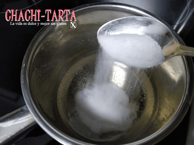 Mientras se enfría prepara la mousse de chocolate blanco, para ello calienta la nata para postres, yo he usado la marca KAIKU, es sin lactosa; una vez que empiece a calentarse añade el chocolate blanco y remueve poco a poco hasta que se funda, posteriormente la gelatina neutra previamente hidratada, continua removiendo hasta diluir y reserva hasta que esté a temperatura ambiente.