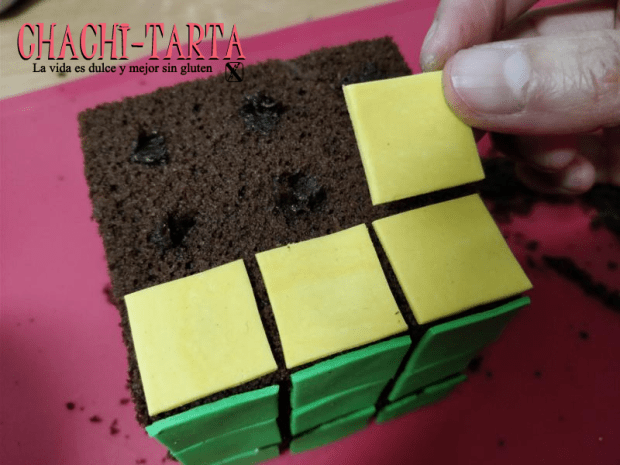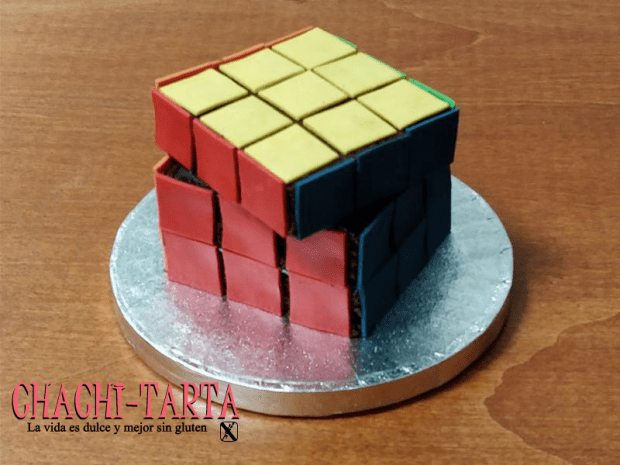 Mi suegro es muy fan de los cubos de Rubik y tiene algunos de ellos en casa de distintas formas y complejidades, es por ello que desde el año pasado por estas fechas estaba yo con muchas ganas de hacer esta tartita, pero con un bebé de meses es un poco complicado sacar tiempo de donde casi no hay; este año que ya es mas mozo y me deja un poco respirar me animé a prepararla y me divertí un montón 😀 la verdad que estas cosas a mi me relajan mucho.