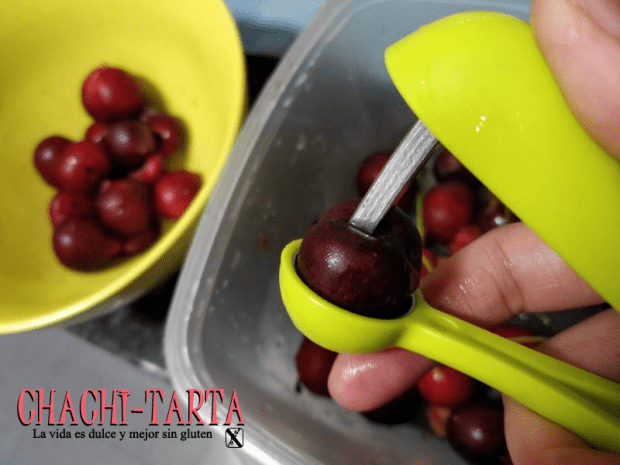 Bueno, esto es muy sencillo; lo primero que has de hacer es lavar las cerezas y deshuesar, puedes utilizar un cuchillo aunque para ello existen utensilios muy útiles similares (para mí iguales) a los que se usan para deshuesar las aceitunas, la verdad viene bien tener uno. En fin, reserva las cerezas una vez que las tengas limpias y sin hueso.