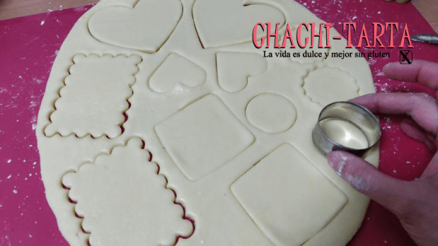 Puesto que las galletas sin gluten suelen ser un poco más quebradizas de lo normal (al menos con la harina que yo uso, la Schar Mix C) lo que recomiendo es no dejarlas demasiado finas a la hora de extender, su grosor debería ser de aproximadamente 1 cm; además al momento de sacar del horno no intentar quitarlas de la bandeja enseguida sino esperar un poco a que se temple, no solo por el hecho de que te puedes quemar las manos sino también porque al estar recién horneadas son más frágiles y se les pueden formar grietas.