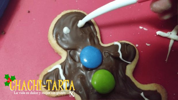 Puesto que somos muchos opte por preparar unas deliciosas galletas con figuras navideñas que a todo el mundo le han encantado. Como la mayoría (sino todos) mis compañeros son amantes del chocolate, las he decorado con una abundante cobertura de chocolate blanco y chocolate negro, usando además lacasitos y grageas de colores.