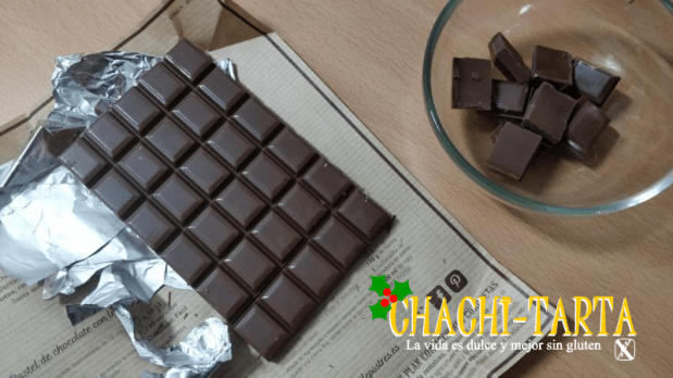 Empezaremos troceando el chocolate, reservaremos una cuarta parte del mismo en otro bol y el resto lo fundimos al baño de María. Ten cuidado de que el bol no toque el agua y qué el agua tampoco llegue a hervir.