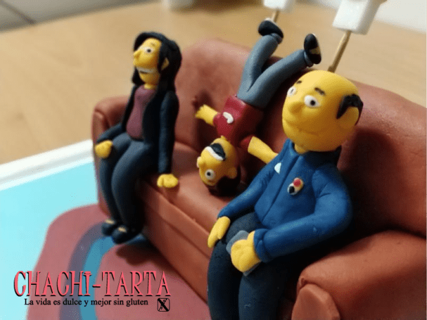 Para darle un poquito de humor, esta vez se me ocurrió «simpsonizarnos» en esta tarta sofá, 100% sin gluten y con mucho chocolate, tanto bizcocho como cobertura… ufff! quedó de vicio!, así que si estas buscando inspiración para tu próxima tarta, sigue leyendo que a continuación te explico más detalles del proceso de elaboración 🙂 espero te guste.