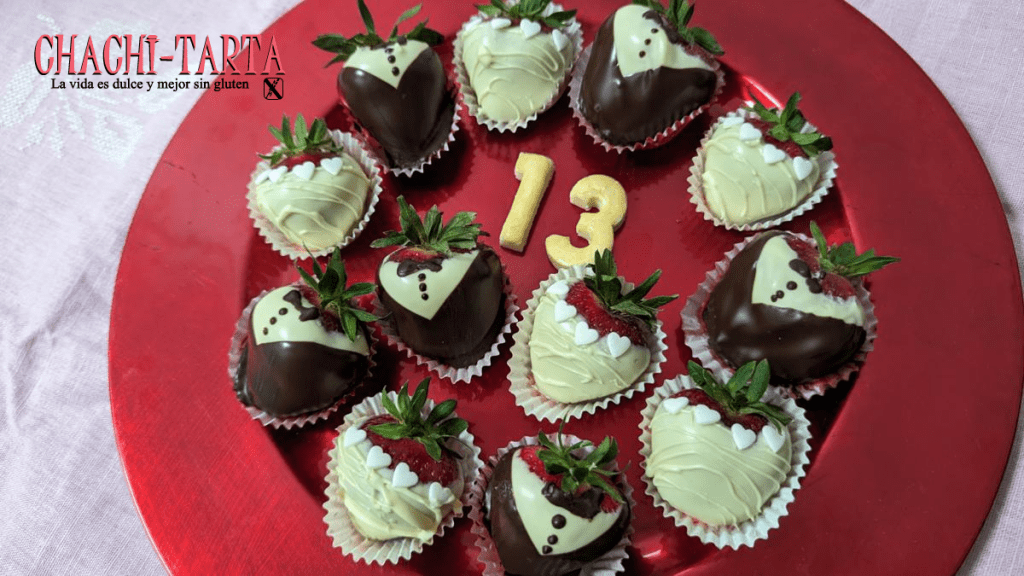 Y como nada, 13 años han pasado ya desde que dijimos el «sí quiero», mi marido y yo celebramos el fin de semana pasado y para tener un detalle especial preparé estas fantásticas fresas novios, con cobertura de chocolate, hummm! buenísimas…
