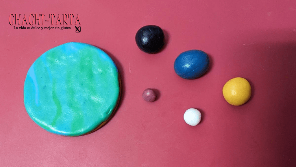 Para colorear el fondant utilizaremos un palillo de madera y poco a poco iremos añadiendo más cantidad en función al tono del color que deseamos; también podemos mezclar varios colores para obtener otros, es muy entretenido la verdad. En este caso he utilizado los colores: Azul, amarillo, verde, negro y rojo.